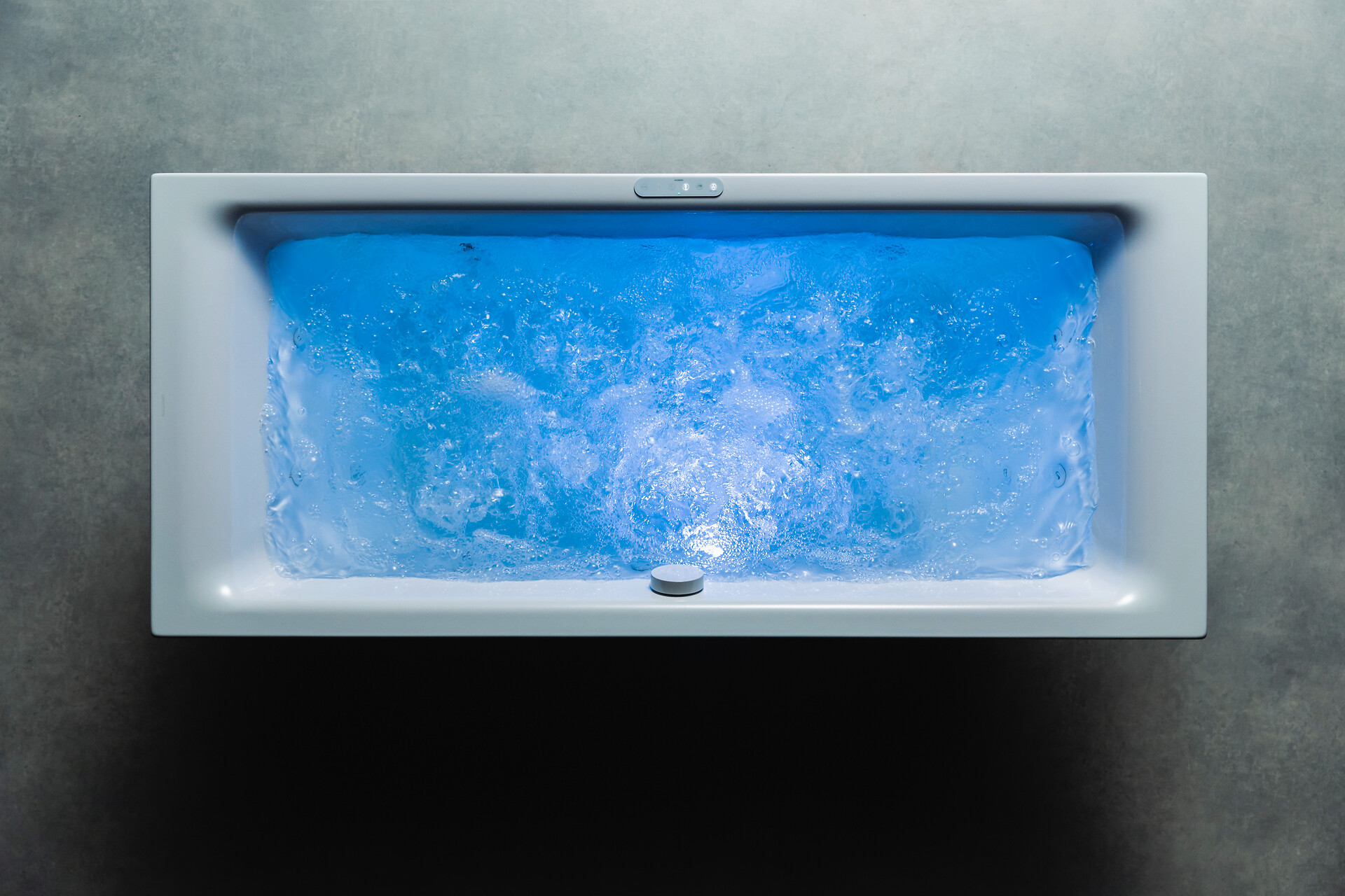 Mit ihrer Spektrallicht-Funktion sorgen die Whirlsysteme von Kaldewei für ein faszinierendes Spiel aus Licht, Luft und Wasser. Ob ein anregendes, tiefes Rot, ein sanftes, seidiges Grün, ein luftiges Blau oder ein neutrales Weißlicht – seit jeher ist die positive Wirkung von Licht und Farbe auf Körper und Geist bekannt und sorgt in Verbindung mit Wasser für noch mehr Tiefenentspannung. Für das ultimative Wellness-Erlebnis lässt sich so ganz einfach eine wohltuende Wasser- oder Luftmassage mit der Energie des Spektrallichts kombinieren.