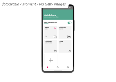Egal wo du bist – mit der App hast du dein Wassersystem immer im Blick – und kannst dich entspannt zurücklehnen. Warnmeldungen erhältst du auf dein Mobiltelefon und kannst sofort reagieren. Die App erhöht den Bedienkomfort in deinem Wasserwarnsystem. Zum Beispiel lässt sich der Haupthahn ferngesteuert oder automatisiert absperren, wenn du für längere Zeit das Haus verlässt. Deinen Wasserverbrauch kannst du mit Hilfe anschaulicher Grafiken tracken – damit du die wertvolle Ressource Trinkwasser sparsam verwenden kannst.